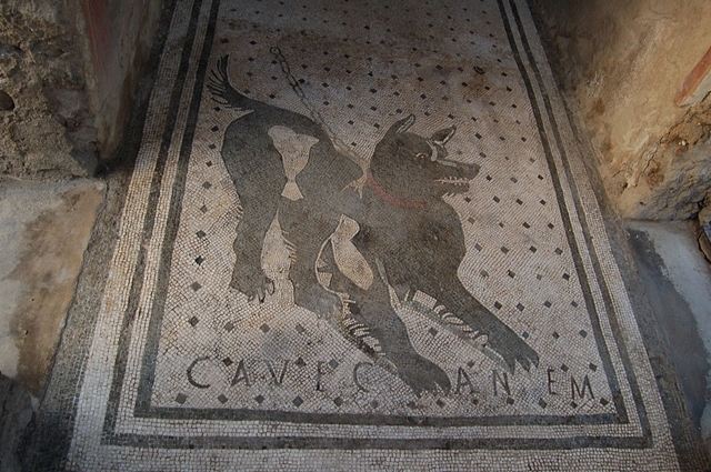 A Casa do Poeta Trágico tem esse nome por conta dos mosaicos de atores de teatro, além de vários afrescos com temas místicos e heroicos. É famosa por seus grafites e o mosaico na entrada - Cave Canem (cuidado com o cão).