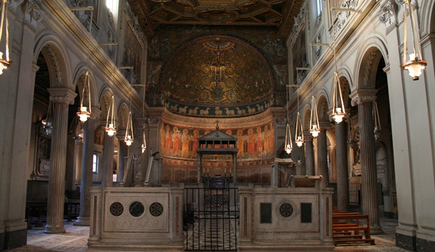 Igreja que oferece a oportunidade de apreciar três tempos de história. No nível da rua encontra-se uma igreja do século 12; embaixo dela, uma igreja do século 4; e, mais abaixo, edifícios romanos primitivos.