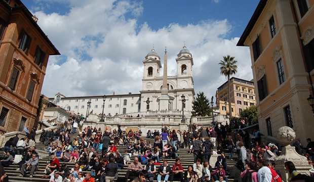 A Piazza di Spagna) é conhecida como ponto de encontro de visitantes do mundo inteiro.